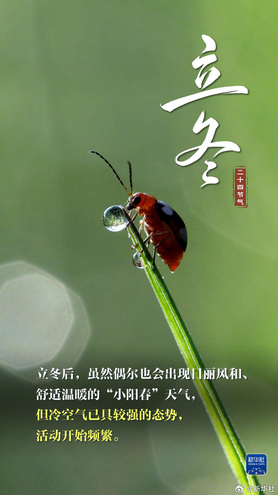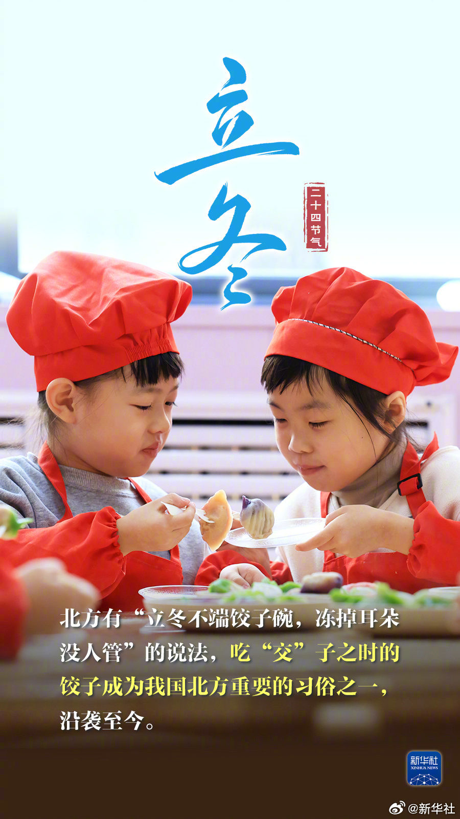 【今日立冬,迎接冬天】①立冬是冬季第一个节气,民间习惯把这天作为冬季之始;②此时节意味着开始进入寒冷的季节,要注意防寒保暖;③“立冬补冬,补嘴空”,北方有吃饺子的传统,南方爱吃鸡鸭鱼肉,今天你吃饺子了吗?冬天真的来啦!